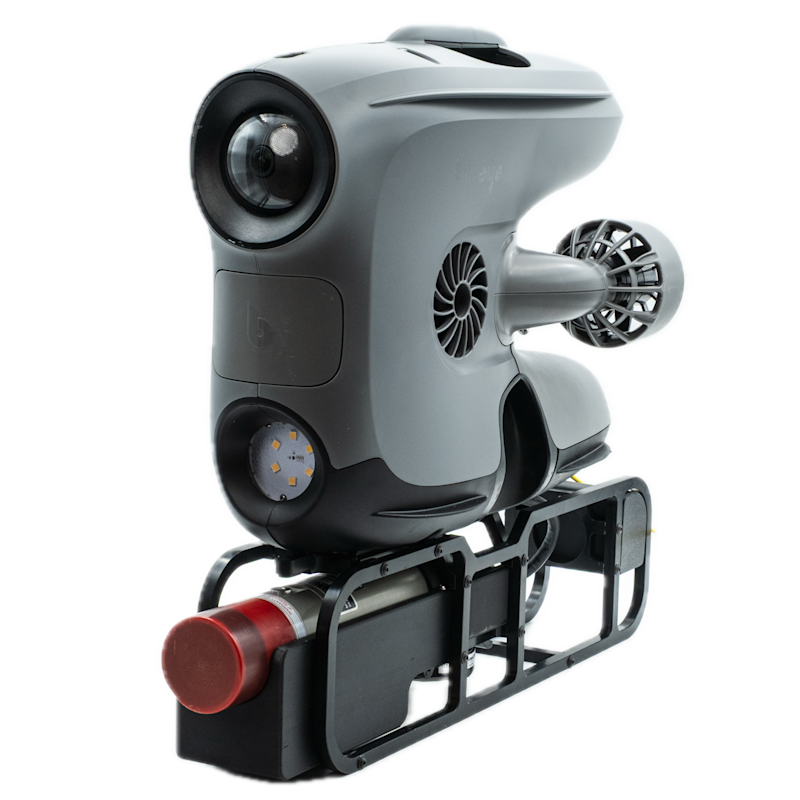 Blueye Integration | Skid mounted underneath Blueye X3 with buoyancy to make the sonar neutral in water |